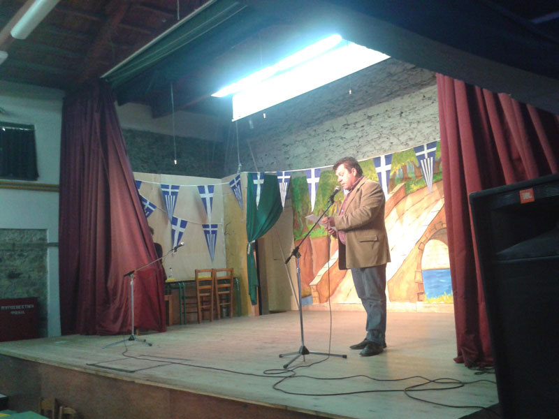Ανήμερα της επετείου, με τους μαθητές του σχολείου μας ντυμένους με παραδοσιακές στολές παρακολουθήσαμε τη δοξολογία στον Άγιο Γεώργιο. Το σχολείο μας είχε αναλάβει την εκφώνηση του πανηγυρικού την οποία έκανε η εκπαιδευτικός Συκά Γιασεμή με μια πολύ ενδιαφέρουσα ομιλία. Στη συνέχεια ακολούθησε η κατάθεση στεφανιών στο μνημείο των ηρώων και η καθιερωμένη παρέλαση, ευτυχώς με πολύ ωραίο καιρό.